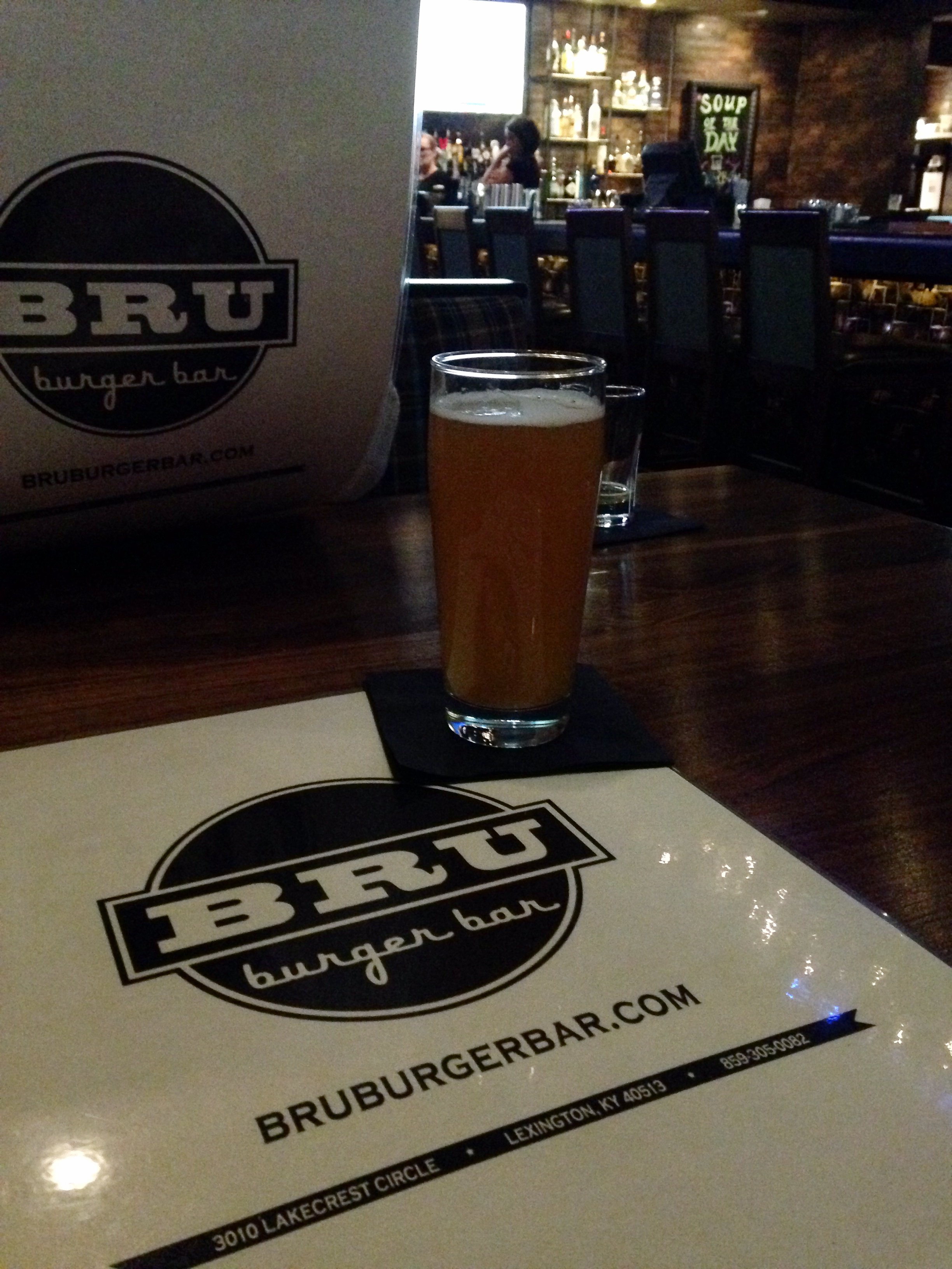 another option. My first visit to Bru, I had the Ahi Tuna Burger with sweet chili mayo and cucumber slaw, and our table split an order of Bru Fries with house ketchup, black pepper mayo, and chipotle barbeque sauce. I’m quite certain that I was full when I had eaten only half of my dinner, but it was so good, I had to finish it all. The ahi tuna was cooked exactly the way I asked, and it paired quite well with the fries and four unique sauces. The restaurant was full that evening with a crowd of Big Blue Madness fans cheering on our Wildcats, but the service was still good. My friends tried the Provençal burger (think basil aioli, red onion jam, and herbed goat cheese) and the Ground Turkey Burger (with carrot ginger slaw and peach compote), and they raved about both. The onion rings were a big hit as well.